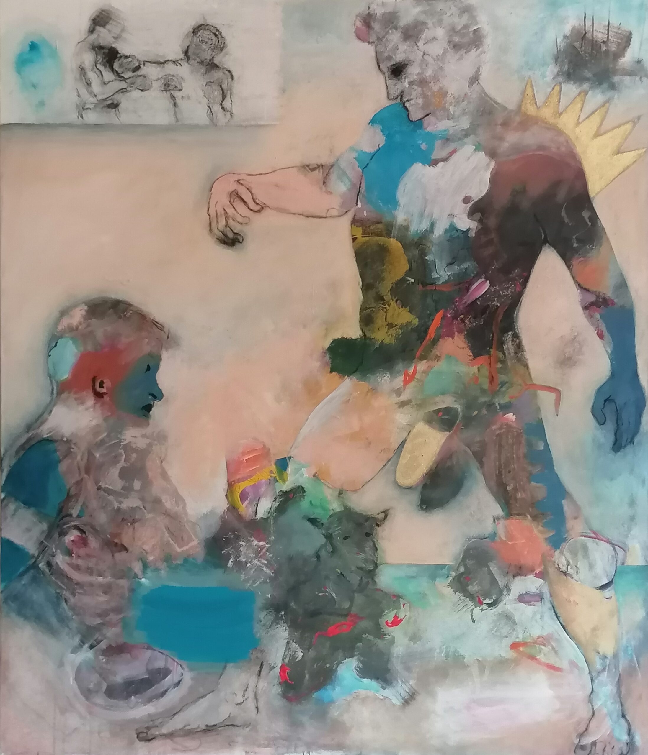 Engelbert Müller zeigt uns innere Bilder seiner Geschichten und einer Auseinandersetzung mit Welt. Im Malprozess lotet er die Ausdrucksmöglichkeiten seines Mediums immer wieder neu aus, auf der Suche nach eigenen Wegen, seiner Sprache und seinen persönlichen Zeichen und Symbolen. Seine Bildsprache ist spontan, manchmal skizzenhaft, manchmal verdichtet in einem ständigen Prozess des Verwerfens und Suchens nach der besseren Lösung. Engelbert Müller bildet nicht ab, sondern transformiert in Malerei. Dabei geht es nicht nur um Begriffe und Ideen, sondern auch um die Sinnesempfindung, die irreduziblen Elemente der Erfahrung, unmittelbar zum Ausdruck zu bringen. Die Bildräume mit ihren Farben, Strukturen, assoziativen Elementen, die Schrift, die Chiffren, das alles zieht den Betrachter in die Malerei von Engelbert Müller und lädt ihn ein zum verweilen.